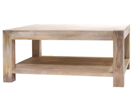 Indyjski stolik kawowy, który został wykonany z litego drewna mango. Stolik ma przepiękny kolor oraz bardzo ciekawa konstrukcję, tak że przekrój nóg, wykonanych z całego kawałka drewna jest widoczny od góry na blacie. Bardzo dobrze taki stolik współgra z innymi meblami drewnianymi oraz nowoczesnymi. Duża powierzchnia ławy kawowej czyni go praktycznym elementem salonu.