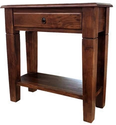 Drewniana klasyczna konsola z szufladą – kolor ciepły brąz, 80 cm