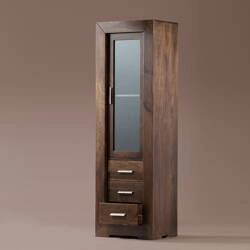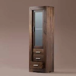 wąska witryna kolonialna z mangoWysoka i wąska witryna została wykonana z drewna mango. Mebel został wykonany ręcznie w Indiach. Przeszklone drzwi oraz praktyczne szuflady w połączeniu z nowocesną linią wpada w oko. Witryna doskonale pasuje do salonu lub