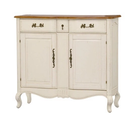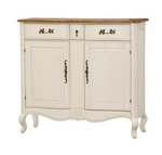 Prowansalska komoda o wąskiej formie z giętymi nóżkami i grawerowanymi szufladami, nawiązująca do francuskiego stylu Prowansji. Metalowe dekoracyjne uchwyty dodają meblowi szlachetności i charakteru, tworząc harmonijny kontrast z jasnobrązowym drewnem.