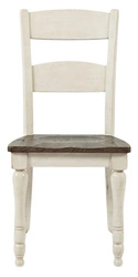 Eleganckie krzesło prowansalskie wykonane z recyklingowanego drewna sosnowego w kolorze bieli antycznej z kontrastującym brązowym siedziskiem. Idealne do wnętrz w stylu shabby chic i rustykalnym.