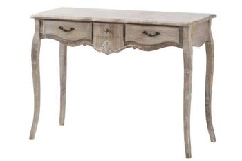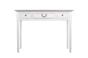 Konsola w stylu prowansalskimElegancka konsola w stylu prowansalskim, z szufladami oraz eleganckimi uchwytami. Całości dopełnia charakterystyczna biel, która wnosi spokój i subtelna elegancję. Drewniane, lekko bielone i przetarte blaty stanowią dodatkowy
