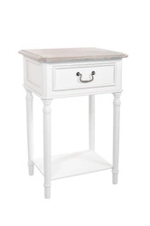 Szafka prowansalska - pomocnikZgrabna szafka w styluShebby chic, w białym mocno przetartym kolorze i lekko przecieranym drewnianym blatem posiada szufladę i półkę. Taki pomocnik to uzupełnienie kolekcji mebli prowansalskich. Szafka może być wykorzystana j