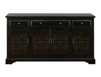 komoda z ażurowymmi drziwmi153 cmDrewniana komoda czterodrzwiowa z trzema szufladami i przeszklonymi ażurowymi drzwiamiw tutaj w kolorze czarnym z eleganckimi uchwytami. Komoda będzie ładnie prezentować się w jasnych pomieszczeniahc w stylu prowansalskim