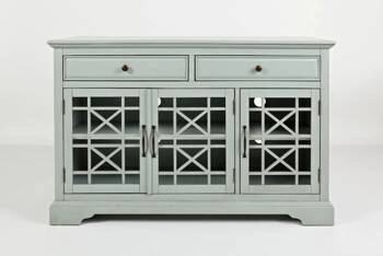 Komoda 153 cm Earl Grey.Prowansalska, drewniana komoda czterodrzwiowa z trzema szufladami. Drewniana kmoda została wykonana w kolorze szaromietowym. Szuflady i drzwi posiadają eleganckie uchwyty a drzwiczki są przeszklone o azurowym wykonaniu.PRZED ZAKU