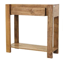 Konsola z litego drewna mango z półką i szufladą 80 cm – kolor toffi,