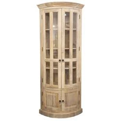 Narożna witryna z drewna mango to elegancki mebel o zaokrąglonej formie, z przeszklonymi drzwiczkami i dolną szafką. Idealna do wyeksponowania dekoracji, zastawy lub rodzinnych pamiątek.