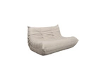 Designerska sofa dwuosobowa w odcieniu jasnego beżu. Prosty, elegancki kształt z pikowaniem, miękka aksamitna tkanina i wyjątkowy komfort siedzenia.