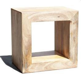 Kubiczny stolik, pomocnik - z mangoKubiczny pomocnik wykonany z litego drewna, prosta nowoczesna forma sprawia, że jest on uniwersalnym meblem, który może służyć jako szafka nocna, stolik do postawienia przy fotelu- kanapie, mini regał czy też pomocnik -