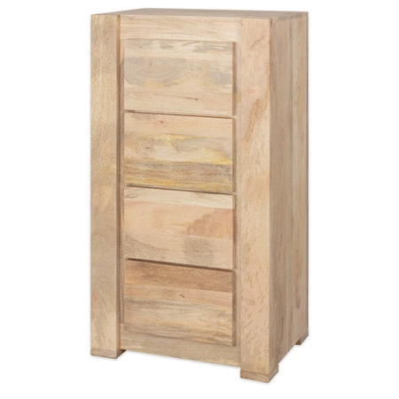 - Ręcznie wykonana indyjska komoda z litego drewna mango. Cztery przestronne szuflady, naturalne wykończenie, nowoczesny design i solidna konstrukcja. Idealna do wnętrz kolonialnych i skandynawskich.