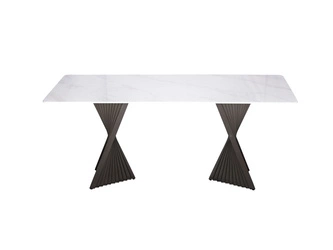 Nowoczesny stół ze złotymi nogami i białym blatem marmurowym 160 cm
