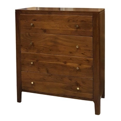 Indyjska komoda drewniana z akacji 80 cm w kolorze walnut. Solidna konstrukcja z litego drewna, 4 szuflady z metalowymi uchwytami i zaoblonymi brzegami. Styl i trwałość do salonu lub sypialni.
