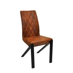 Krzesło metalowe z tapicerką z ciemnobrązowej ekoskóry. Solidne, eleganckie i łatwe w utrzymaniu. Produkt dostarczany gotowy do użytku.