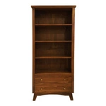 Elegancki regał z litego drewna akacji w kolorze orzecha włoskiego. Klasyczna forma z półkami i pojemnymi szufladami sprawia, że idealnie sprawdzi się jako regał na książki w salonie, gabinecie lub biblioteczce.