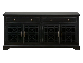 Duża drewniana komoda kolonialna z mango o długości 180 cm to połączenie klasycznej elegancji i funkcjonalności. Idealna do salonu, sypialni lub jadalni, oferuje dużą przestrzeń do przechowywania dzięki szufladom i szafkom z półkami.