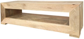 Minimalistyczna szafka RTV mango 120 cm wykonana z litego drewna. Prosta forma, naturalny kolor i kompaktowy rozmiar sprawiają, że pasuje do każdego wnętrza. Idealna jako stolik RTV, ława do przedpokoju lub szafka do sypialni.