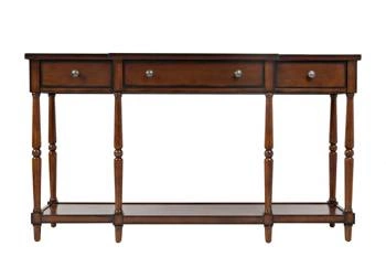 Długa konsola do przedpokoju z szufladami w kolorze mahoniowym
