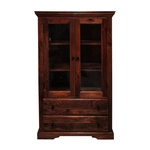 Witryna kolonialna CLASSIC BROWN z drewna akacji indyjskiej. Przeszklone drzwi, drewniane półki i pojemne szuflady. Idealna do salonu, jadalni i gabinetu.