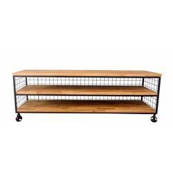 Szafka RTV loftWymiary: Wysokość: 50 cm, szerokość 150 cm, głębokość: 40 cmMetalowaszafka RTV industrialnazostała wykonanaz drewna dębowegooraz metalu. Metalowy stabilny stelaż i użyte drewniane półki zapewniają trwałość i wytrzymałość. Szafka loft posi
