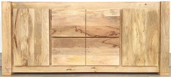 Szeroka komoda indyjska z litego drewna mango w kolorze naturalnym. 2 szuflady i 2 szafki z półkami, ręczne wykonanie, kolonialny styl. Pojemny, elegancki mebel do salonu i sypialni.