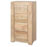 Ręcznie wykonana indyjska komoda z litego drewna mango. Cztery przestronne szuflady, naturalne wykończenie, nowoczesny design i solidna konstrukcja. Idealna do wnętrz kolonialnych i skandynawskich.