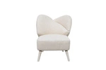 Stylowy fotel wypoczynkowy vintage w beżowej tkaninie boucle o miękkim splocie. Komfortowy, designerski i ponadczasowy – idealny do salonu, sypialni lub gabinetu.