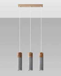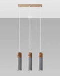 Źródło światła: GU10, 3x40W, 3x12W LED, 50-60Hz, ~220-230V, IP20, klasa ochronności IŹródło światła nie jest w komplecie. Wymiary: 45/6/120 cmWymiary klosza: 7/28 cmMateriał: beton, drewnoKolor: szary, naturalne drewno