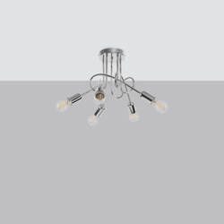 Źródło światła: E27, 5x max 15 W LED, 50Hz, ~230V, IP20, klasa ochronności IŹródło światła nie jest w komplecie.Wymiary: 55/55/35 cmMateriał: stalKolor: chrom