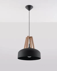 Źródło światła: E27, 1x60W, 1x15W LED, 50-60Hz, ~220-230V, IP20, klasa ochronności IŹródło światła nie jest w komplecie.Wymiary: 30/30/85 cmWymiary klosza: 30/14 cmMateriał: stal, drewnoKolor: czarny, naturalne drewno