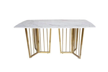 Nowoczesny stół ze złotymi nogami i białym blatem marmurowym 160 cm