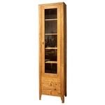 Wąska witryna drewniana z przeszklonymi drzwiczkami – Bella Light | drewno akacji jasny orzech