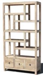 Wyjątkowy regał wykonany z litego drewna mango z asymetrycznymi półkami i trzema pojemnymi szufladami. Idealny do nowoczesnych wnętrz, dodając im indywidualnego charakteru i ciepła naturalnego drewna.