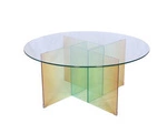 Okrągły, nowoczesny stolik kawowy z opalizującego szkła - elegancki mebel, który ożywi Twoje wnętrze. Wielokolorowe detale i solidna konstrukcja zapewniają niepowtarzalny wygląd i trwałość. Kup teraz, aby dodać wyjątkowego blasku do swojego salonu!