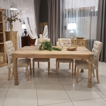 Dzięki pięknemu matowemu wykończeniu stół zyskuje niepowtarzalny charakter. Jeśli doceniasz detale i styl inspirowany kolonialnym wzornictwem, ten mebel spełni Twoje oczekiwania. Możesz go idealnie skomponować z masywnymi krzesłami z drewna mango lub lżejszymi siedziskami w jasnych kolorach, które dodatkowo podkreślą jego unikalny charakter.