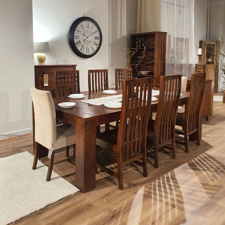 Nasz stół z drewna mango wyróżnia się nie tylko estetyką, ale także solidnością wykonania. Grubość drewna wynosząca około 2,5 cm oraz konstrukcja w całości z litego drewna zapewniają trwałość na lata. W przeciwieństwie do wielu produktów na rynku, nie stosujemy materiałów drewnopodobnych, takich jak płyty wiórowe czy MDF, co gwarantuje najwyższą jakość i wytrzymałość mebla. Doskonałym uzupełnieniem dla tego drewnianego dużego stołu będą krzesła, które możesz dobrać przeglądając kategorię krzeseł lub też dobrać inne meble z kolekcji VERA DARK lub Classic Brown
