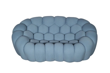 Odkryj przyszłość komfortu z naszą futurystyczną sofą inspirowaną organicznymi kształtami, takimi jak plastry miodu czy pęcherzyki powietrza. Jej symetryczny i unikalny kształt doskonale łączy się z elastyczną tkaniną, która nie tylko przypomina pikowane struktury, ale również zapewnia niezrównany komfort. Poczuj harmonię między designem a wygodą, doświadczając luksusu na najwyższym poziomie.