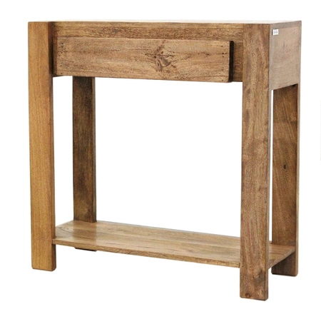 Konsola z litego drewna mango z półką i szufladą 80 cm – kolor toffi,
