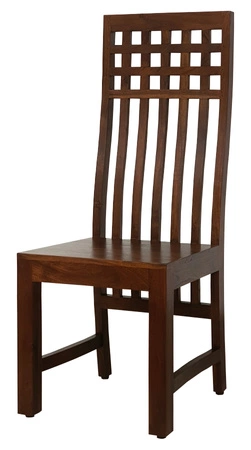 Krzesło z wysokim oparciem w kratkę, zostało wykonane w całości z litego drewna akacji indyjskiej. Eleganckie krzesło w kolorze ciepłego brazu w nowoczesnej, prostej formie, doskonale pasuje do nowoczesnych wnętrz ale również doskonale wpasowuje sie w klasyczne pomieszczenia.