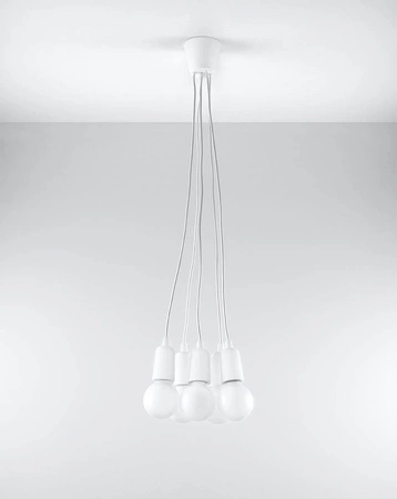 - Źródło światła: E27, 5x60W, 5x15W LED, 50-60Hz, ~220-230V, IP20, klasa ochronności IŹródło światła nie jest w komplecie.Wymiary: 25/25/90 cmMateriał: PVCKolor: biały