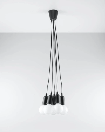 - Źródło światła: E27, 5x60W, 5x15W LED, 50-60Hz, ~220-230V, IP20, klasa ochronności IŹródło światła nie jest w komplecie.Wymiary: 25/25/90 cmMateriał: PVCKolor: czarny