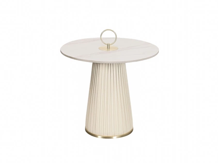 Blat imitacja marmuru;Korpus pokryty skórą ekologiczną tworzącą pionowe plisy;blat w półmacie