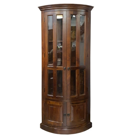 Stylowa narożna witryna z drewna akacji indyjskiej w odcieniu ciepłego brązu