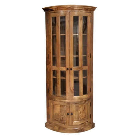 Szukasz mebla, który maksymalnie wykorzysta narożnik Twojego pomieszczenia, a jednocześnie będzie jego ozdobą? Ta narożna witryna z litego drewna mango w pięknym odcieniu toffi łączy funkcjonalność z eleganckim wyglądem. Dzięki swojemu unikalnemu kształtowi idealnie wkomponuje się w przestrzeń, oszczędzając miejsce i dodając wnętrzu ciepłego charakteru.