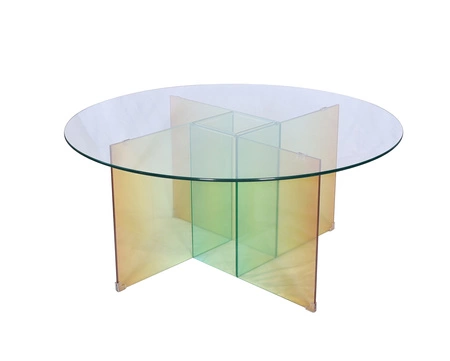- Okrągły, nowoczesny stolik kawowy z opalizującego szkła - elegancki mebel, który ożywi Twoje wnętrze. Wielokolorowe detale i solidna konstrukcja zapewniają niepowtarzalny wygląd i trwałość. Kup teraz, aby dodać wyjątkowego blasku do swojego salonu!