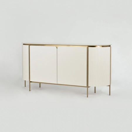 Złamana biel, biały blat, złote nogi i akcenty