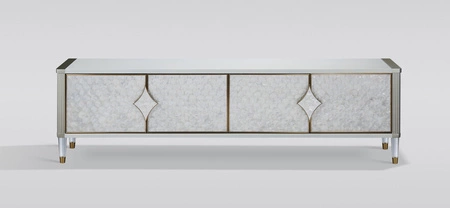 MDF, naturalna muszla morska, stal nierdzewna, akrylowe nogi