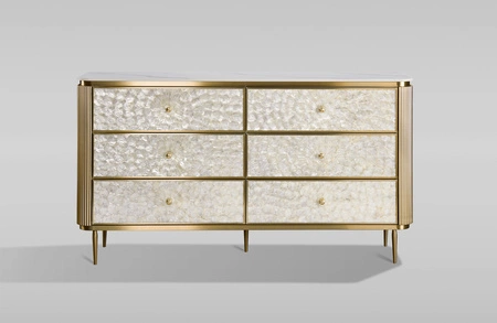 MDF, naturalna muszla morska, stal nierdzewna, blat: marmur syntetyczny