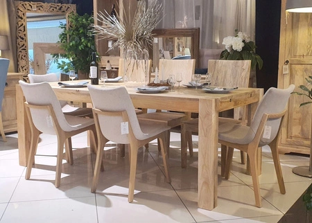 - Stół drewniany jadalniany 200-320 cm z litego drewna mango. Solidny, funkcjonalny i rozkładany – idealny do salonu i jadalni. Gruby blat, masywne nogi i elegancki design sprawiają, że pomieści 10-16 osób, oferując trwałość i styl na lata.