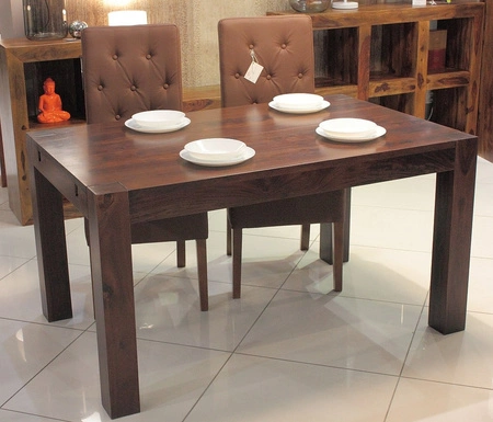 Bardzo solidny, wykonany z drewna mangowca stół indyjski z możliwością jego rozłożenia do 220 cm. Bardzo dobrej jakości, solidny, wyjątkowo elegancki stół, wykonany z grubego litego drewna, solidny blat z grubej litej deski, grube nogi oraz niesamowity kolor, który podkreśla pięno naturalnego drewna.