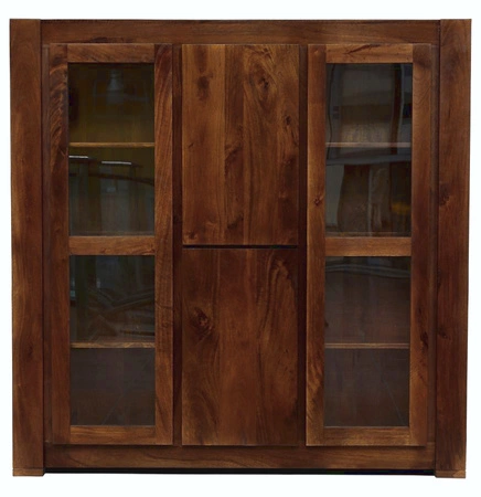 Przeszklona witryna z litego drewna mango w kolorze ciepłego brązu
